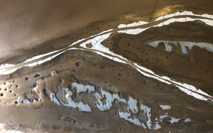 Officina Coppola is a pioneer in the use of liquid metal, limestone and resin to create bespoke artworks for architectural installations and furniture. The artworks, patterns and surfaces designed can be applied to any type of support, and they all harbour an emotional, tactile and visual impact.